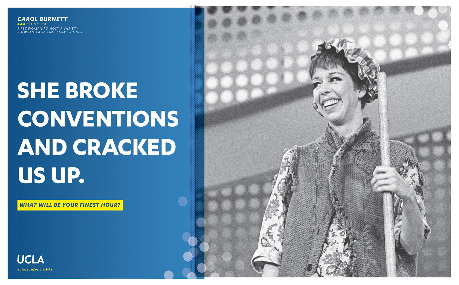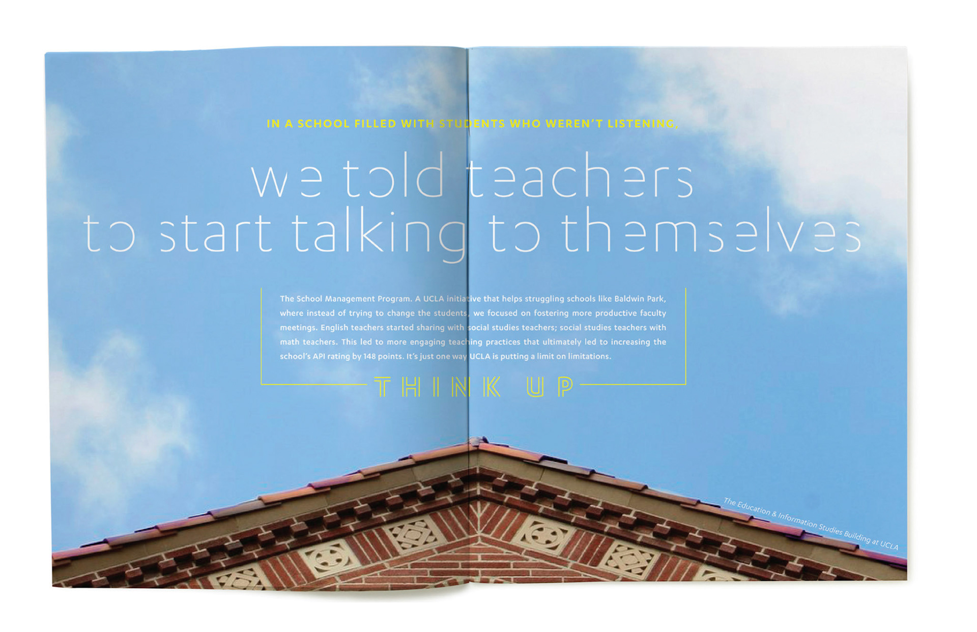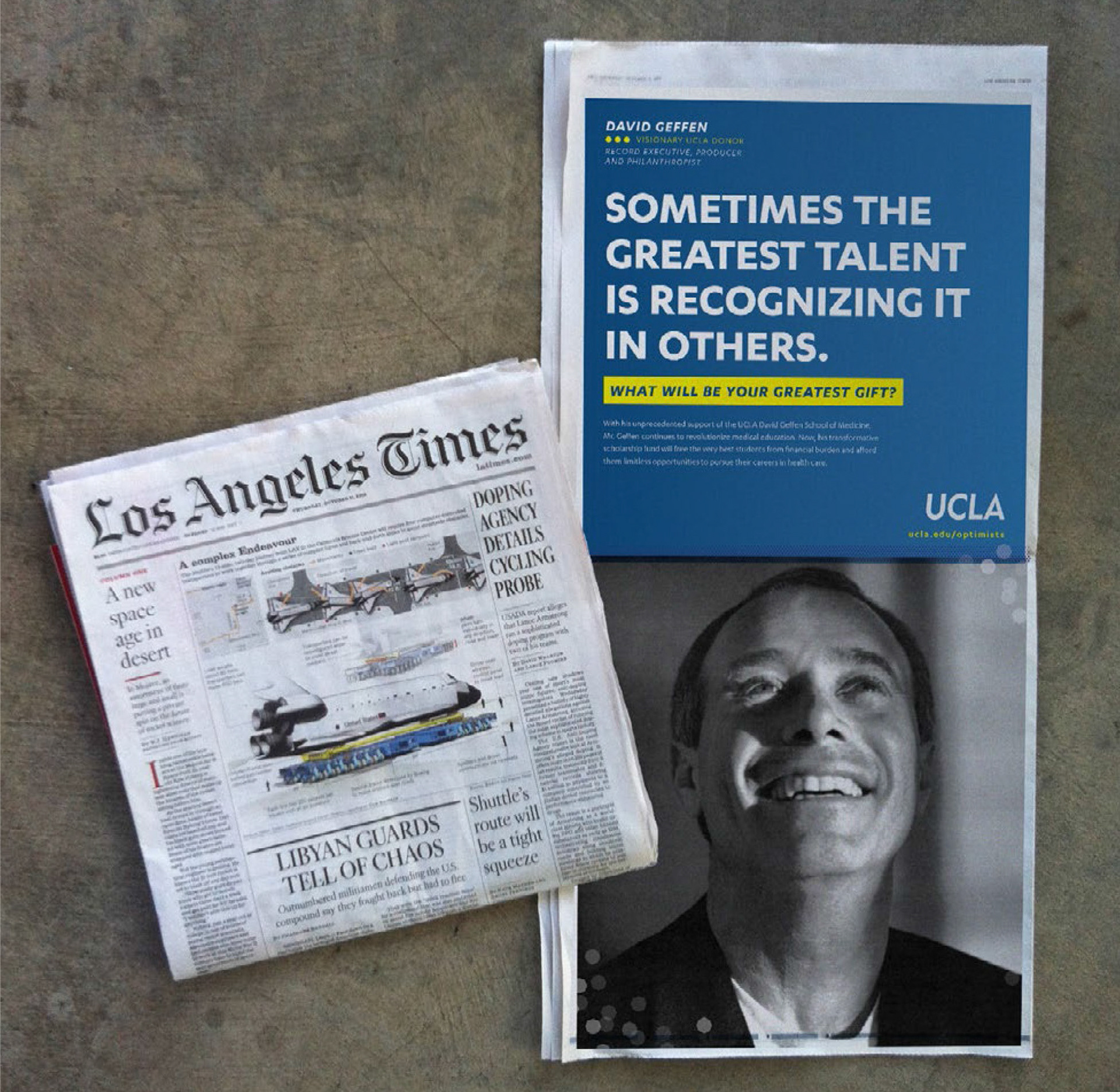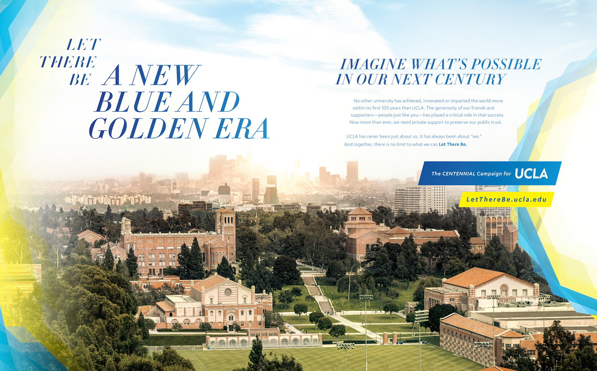 In just shy of a century, UCLA has achieved, innovated, and accomplished more than most institutions twice its age. It’s where the Internet first blinked to life. Where racial integration began, decades before Brown v. Board of Education. Where Nobel Laureates, Academy Award winners, Fortune 500 executives and entrepreneurs, rock stars and Hall of Famers, inventors and initiators got their start. But despite its vast accomplishments, and in part due to its fierce independence and decentralized structure, significant misunderstandings persisted about UCLA’s impact, costing public support. The University was in need of a singular brand platform to cut through the noisy Southern California media market and beyond, one that could unify and encompass the then $5 billion, multi-layered business enterprise, furthering its standing as an international leader in teaching, research, and service for the advancement of society. As the former Chief Creative Officer and Sr Executive Director of Marketing for UCLA, I was responsible for developing a strong in-house marketing team, creating a “brand standard” for UCLA unifying its decentralized tendencies, ran the internal agency serving several campus units, and prepared for its ambitious $4.2B capital campaign. The University thrived, becoming the #1 Public University and unified more than it ever had within its first 100 years. The brand grew from $5B to $8B, and the Centennial Capital fundraising campaign was more successful than anyone could of dreamed. They raised $5.4B, exceeding their goal and raising the most money for a public university in the shortest period of time EVER.