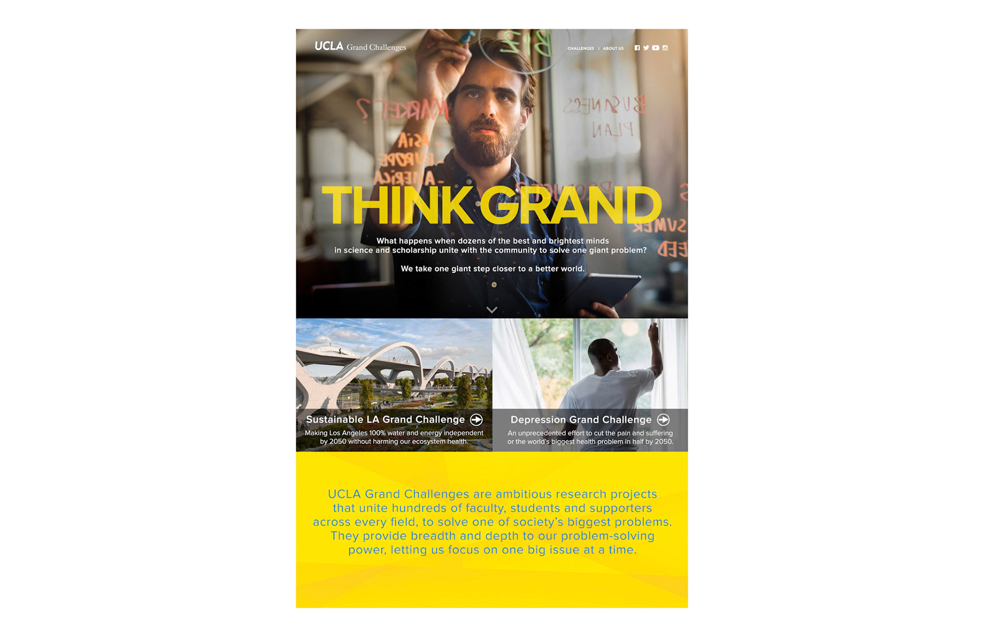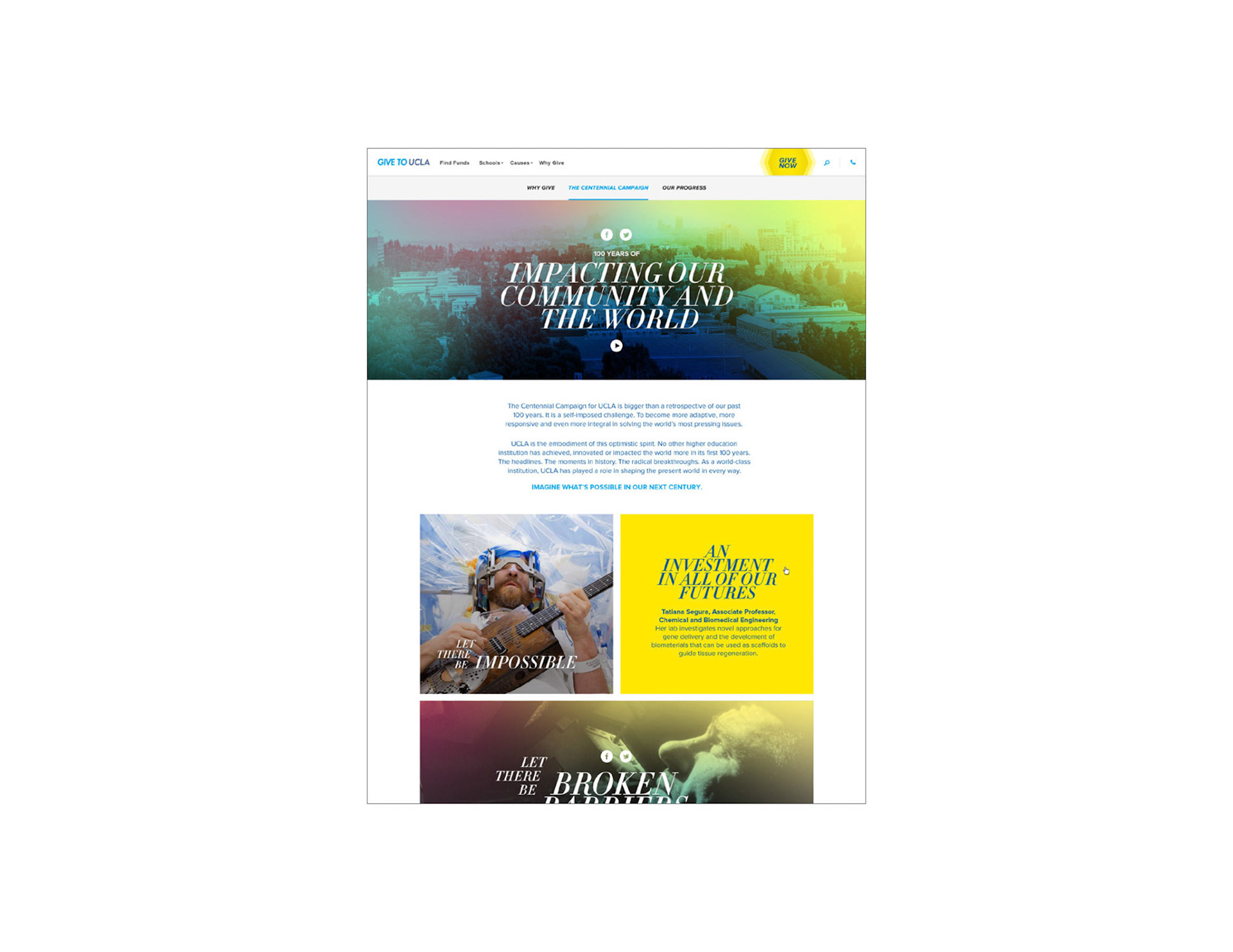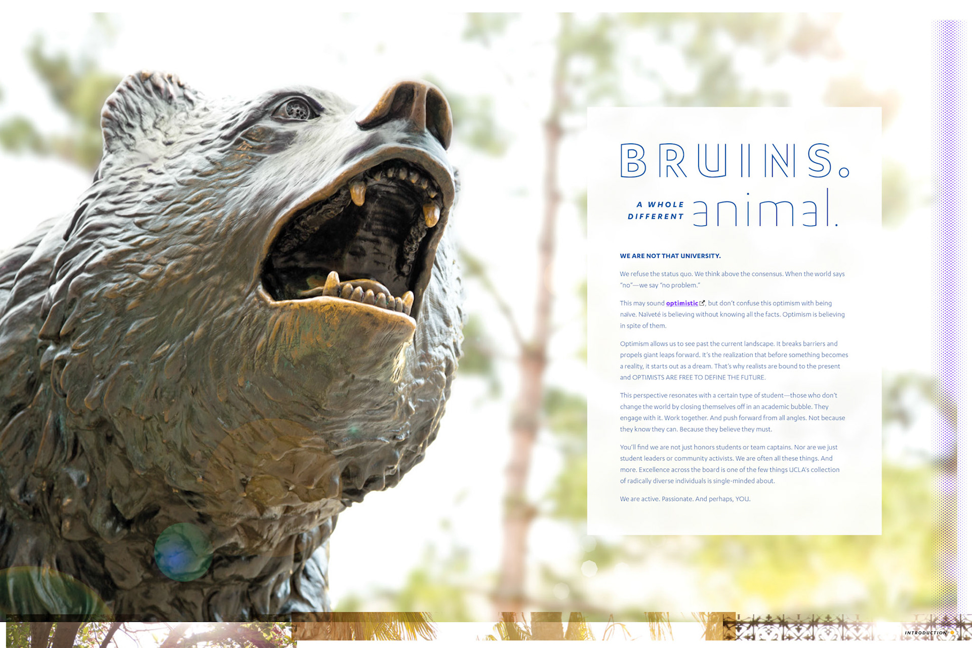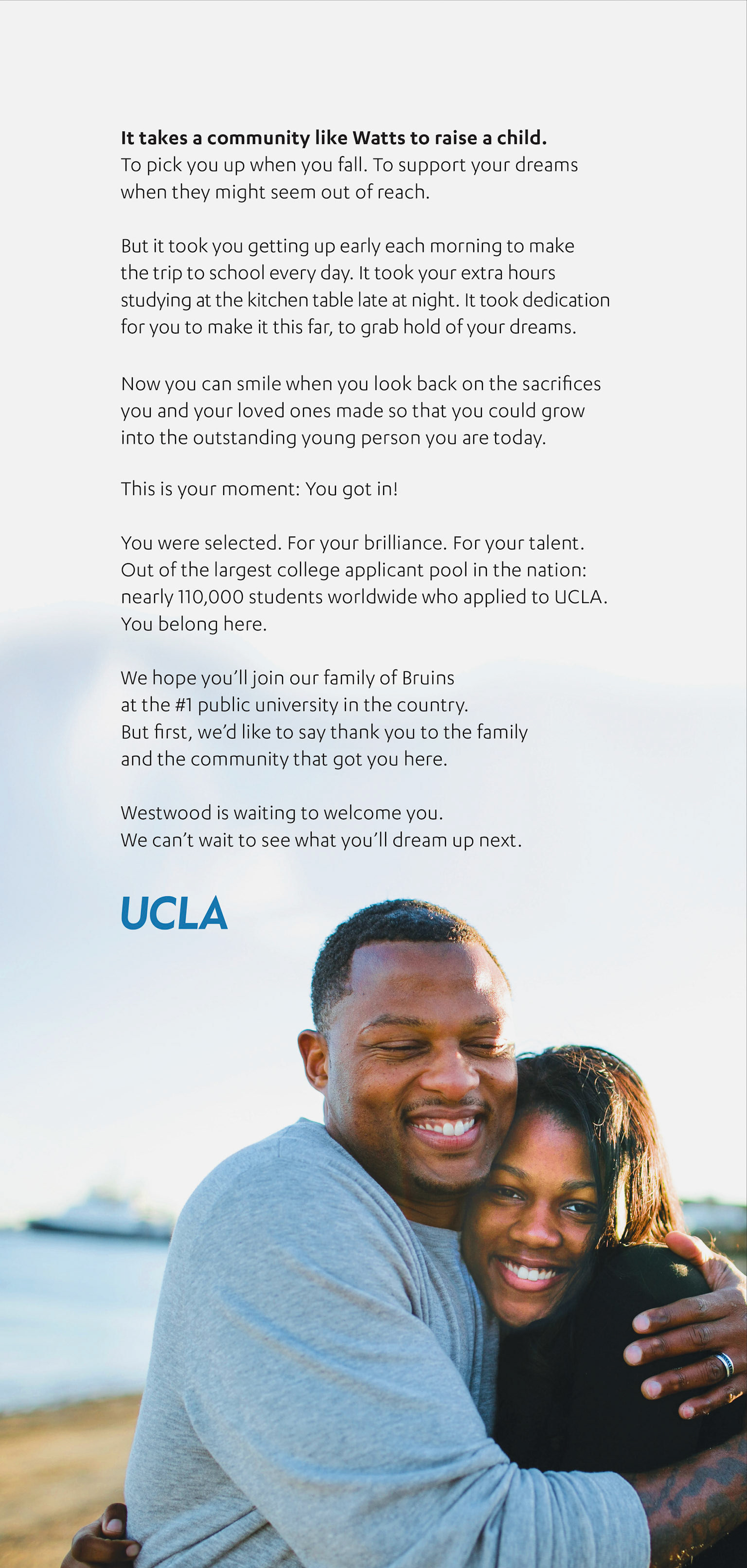 In just shy of a century, UCLA has achieved, innovated, and accomplished more than most institutions twice its age. It’s where the Internet first blinked to life. Where racial integration began, decades before Brown v. Board of Education. Where Nobel Laureates, Academy Award winners, Fortune 500 executives and entrepreneurs, rock stars and Hall of Famers, inventors and initiators got their start. But despite its vast accomplishments, and in part due to its fierce independence and decentralized structure, significant misunderstandings persisted about UCLA’s impact, costing public support. The University was in need of a singular brand platform to cut through the noisy Southern California media market and beyond, one that could unify and encompass the then $5 billion, multi-layered business enterprise, furthering its standing as an international leader in teaching, research, and service for the advancement of society. As the former Chief Creative Officer and Sr Executive Director of Marketing for UCLA, I was responsible for developing a strong in-house marketing team, creating a “brand standard” for UCLA unifying its decentralized tendencies, ran the internal agency serving several campus units, and prepared for its ambitious $4.2B capital campaign. The University thrived, becoming the #1 Public University and unified more than it ever had within its first 100 years. The brand grew from $5B to $8B, and the Centennial Capital fundraising campaign was more successful than anyone could of dreamed. They raised $5.4B, exceeding their goal and raising the most money for a public university in the shortest period of time EVER.