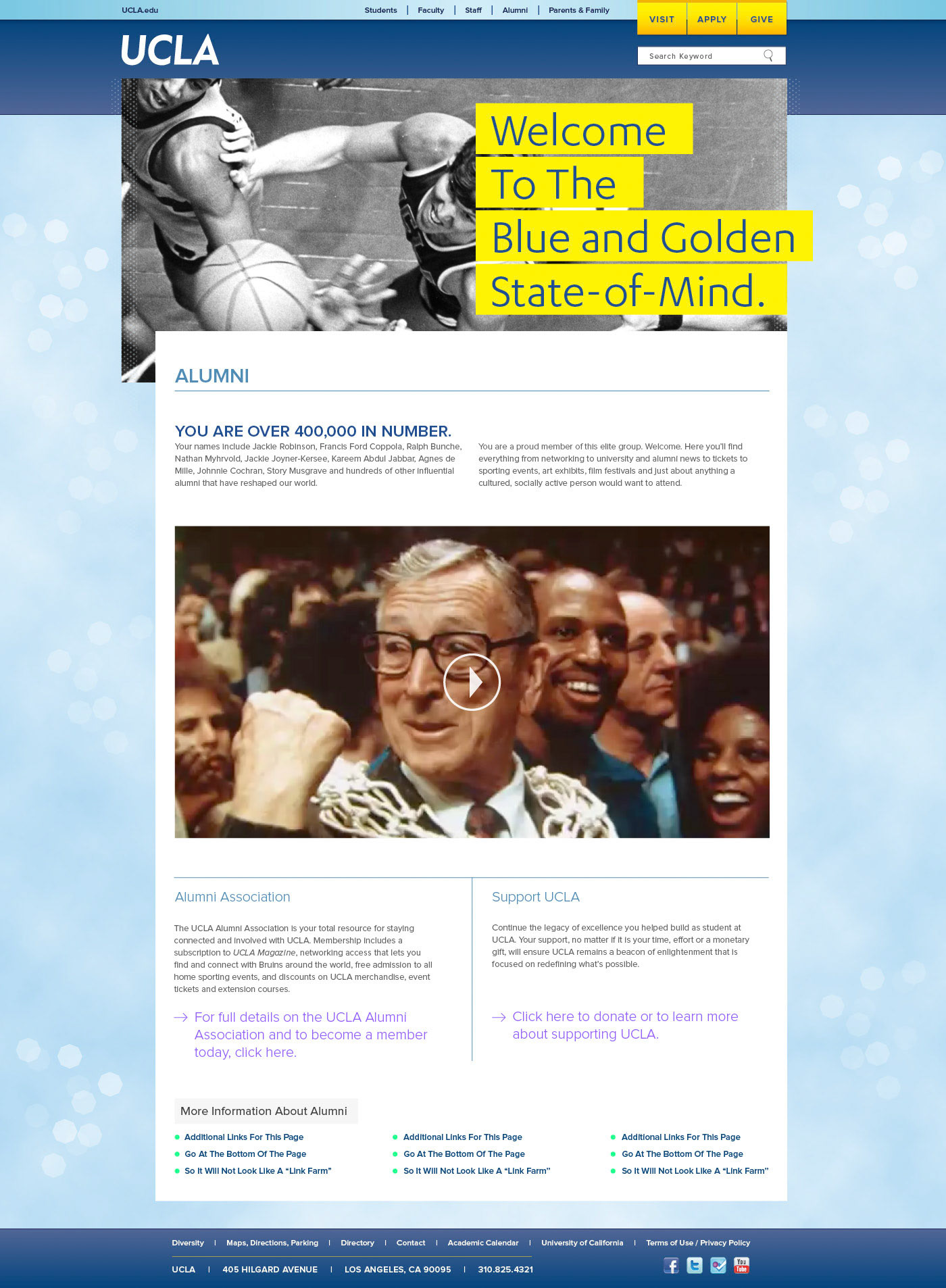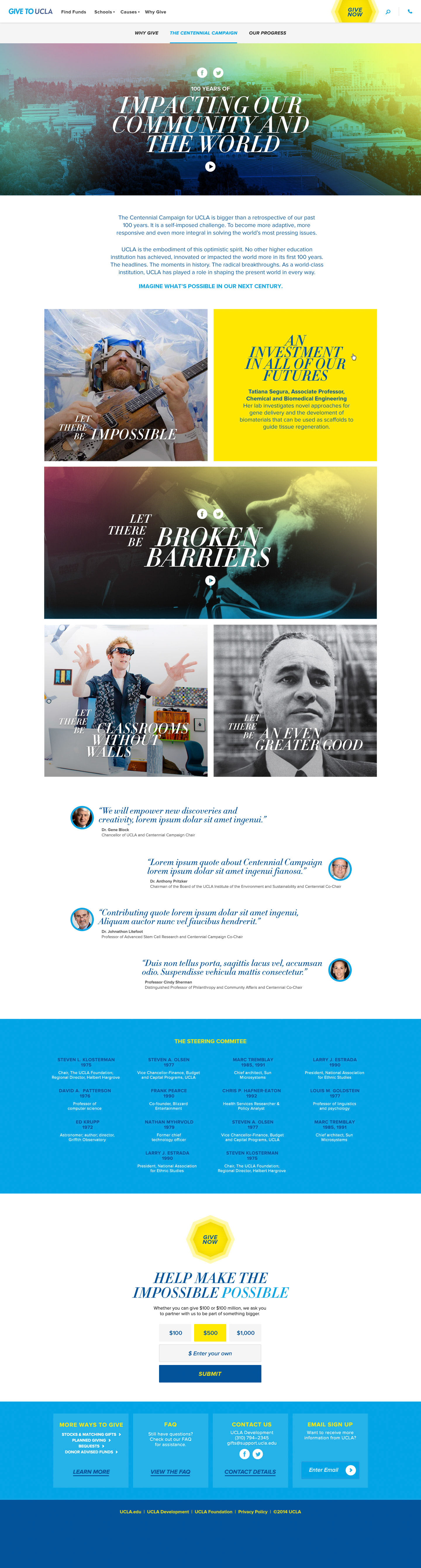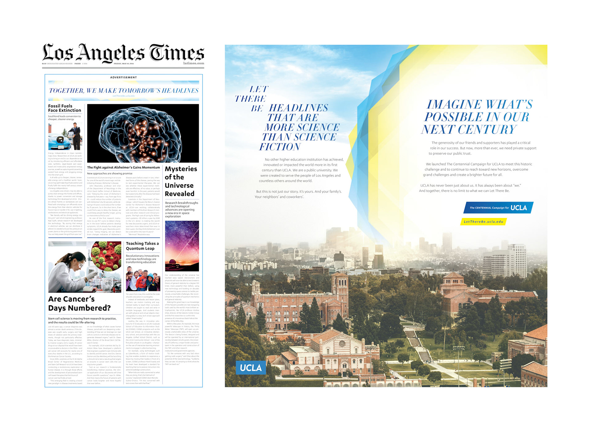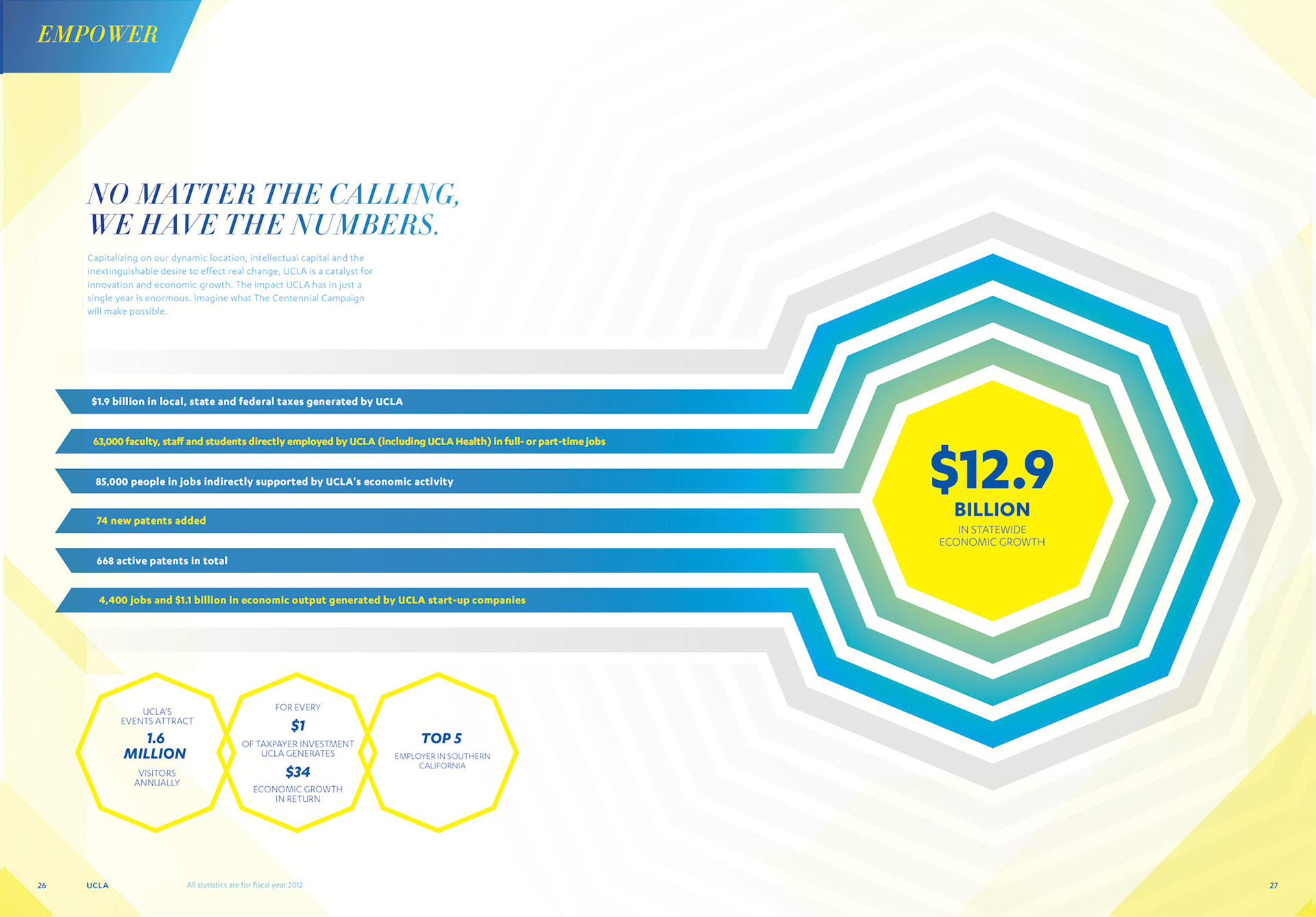 In just shy of a century, UCLA has achieved, innovated, and accomplished more than most institutions twice its age. It’s where the Internet first blinked to life. Where racial integration began, decades before Brown v. Board of Education. Where Nobel Laureates, Academy Award winners, Fortune 500 executives and entrepreneurs, rock stars and Hall of Famers, inventors and initiators got their start. But despite its vast accomplishments, and in part due to its fierce independence and decentralized structure, significant misunderstandings persisted about UCLA’s impact, costing public support. The University was in need of a singular brand platform to cut through the noisy Southern California media market and beyond, one that could unify and encompass the then $5 billion, multi-layered business enterprise, furthering its standing as an international leader in teaching, research, and service for the advancement of society. As the former Chief Creative Officer and Sr Executive Director of Marketing for UCLA, I was responsible for developing a strong in-house marketing team, creating a “brand standard” for UCLA unifying its decentralized tendencies, ran the internal agency serving several campus units, and prepared for its ambitious $4.2B capital campaign. The University thrived, becoming the #1 Public University and unified more than it ever had within its first 100 years. The brand grew from $5B to $8B, and the Centennial Capital fundraising campaign was more successful than anyone could of dreamed. They raised $5.4B, exceeding their goal and raising the most money for a public university in the shortest period of time EVER.